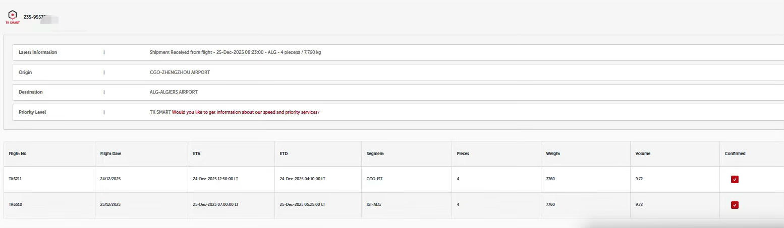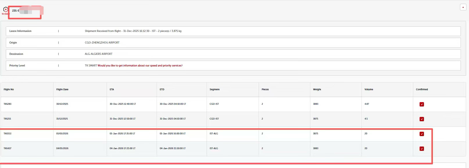 结合客户需求与货物特性,我司依托与土耳其航空(TK)的深度合作资源,为客户量身打造 郑州(CGO)→伊斯坦布尔(IST)→阿尔及利亚-阿尔及尔(ALG) 的中转专线方案: